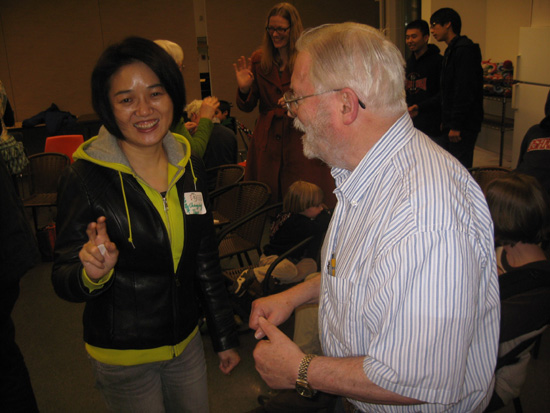 参加社区汉语角的学员来自不同的背景;有在职的职员、退休老人、家庭主妇、中小学孩子甚至婴儿。从70岁银发老人到7个月大的襁褓婴儿构成了学员的年龄跨度。他们的共同之处在于对中国和中国文化充满了好奇、热爱,他们对华盛顿州孔子学院能在西花园举办这样的社区汉语角活动深表感谢,对这样的教学和互动方式很感兴趣。他们在参加汉语角的同时,主动加入到孔子学院志愿者名单中来,还主动帮助开车接送参加活动学生助教。
