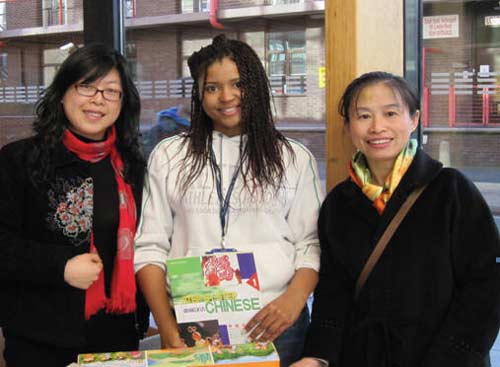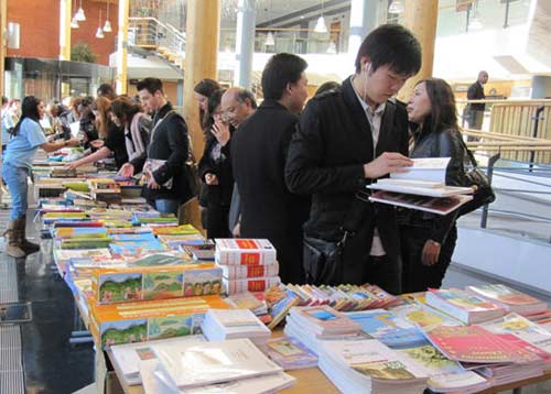 孔子学院院长和老师耐心解答读者的问题,宣传中国文化。一位久居伦敦的泰国读者对中国文化仰慕颇深,他一直参加孔子学院举办的所有汉语课程,手里抱着厚厚的一摞汉语教材,还不断咨询什么样的中文图书最适合他学习汉语。南岸大学的青年教师和学生们不断翻阅着感兴趣的汉语图书。展位旁人来人往,问询者络绎不绝。