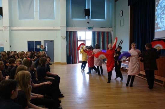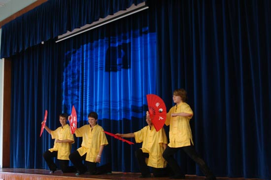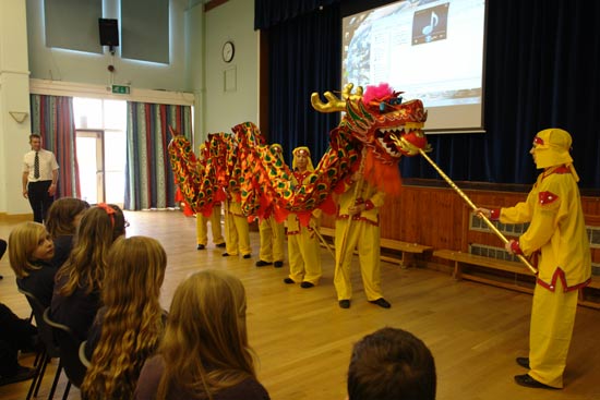 2012年4月27日星期五,一场精彩纷呈的中国文化盛宴,在位于英国英格兰北安普敦郡的Guilsborough School圆满落幕。从中国新年开始,学校不仅利用多种机会开展汉语语言及文化教学,涵盖了多种多样的学科课程,还进行了一场融会舞龙、太极扇、扇子舞等等的文化汇报演出。