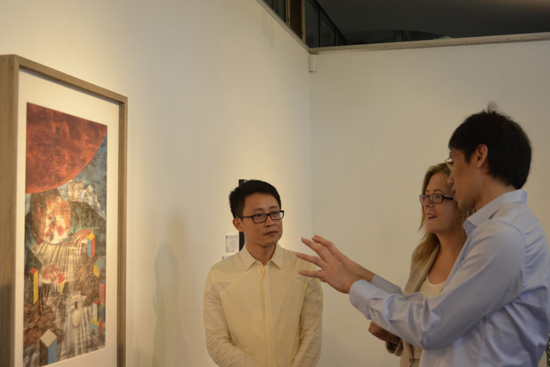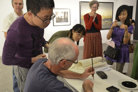 4月1日下午5点30分,孔子学院在纽卡斯尔大学画廊举行了一场文化交流活动,邀请三位艺术家与孔子学院学生以及纽卡斯尔大学学生面对面交流。孔子学院院长Rhys Palmer主持了观展活动,现场特邀艺术展的策展人Catherine Croll和学生一起进行了作品赏析,之后画家吕鹏和杭春晖分别向学生介绍了自己的作品,还现场展示了工笔勾线以及国画画竹,并邀请学生现场参与,气氛欢快活跃。