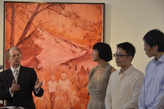 常务副校长Kevin McConkey在开幕式上介绍中国艺术家吕鹏、杭春晖和刘丽芬