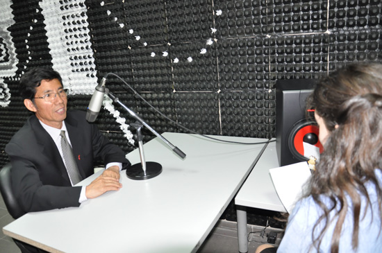 孔子学院的老师们为这些活泼可爱的孩子展示了中国剪纸、旗袍、京剧剧照和中国结等中国文化物品,还组织学生进行踢毽子、下象棋、剪纸、用筷子夹豆子游戏,孩子们表现出了极大的热情,争先恐后地尝试每一种活动。之后,老师们还在礼堂为孩子们介绍了中国,回答了许多孩子们感兴趣的问题。最后,院长在学校的电台接受了采访。