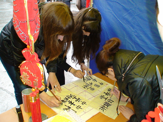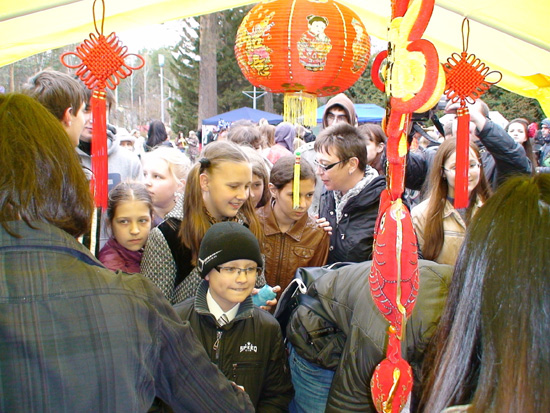 在中国老师的指导下,参观者们手执毛笔兴致勃勃得用汉字写下自己的名字以及祝愿,学习剪纸艺术并品尝了茶艺师现场泡的铁观音。新西伯利亚国立大学的在校汉语学习者们及来自新疆大学的代表团进行了精彩的演出。活动并未受到天气的影响,聚集了很多观众。孔子课堂的中国文化展区被灯笼,中国结等各种中国元素装饰着并到活动结束为止都排满了前来参观的人们。此次活动聚集上百人,其中也包括新西伯利亚各大高校的在校汉语学习者。