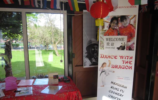 活动当天,优美的中国古典乐曲飘散在整个校园里,学生和家长一进入学校,立即被浓郁的中国氛围所包围。女王小学校长 Felicity Taylor站在前台迎接宾客,她的身边陈列着各种中国特色的物品,更有女王小学的孩子们自己制作的中国文化图册,这些美丽的图册有介绍古代中国的,有介绍中国节庆的,有介绍中国食物的,内容生动而丰富。