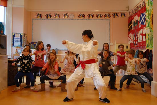 中国功夫一向令外国孩子向往,在武术体验课上,汉办老师陈庆江带领孩子们练习马步冲拳和踢腿,并把深受中国孩子喜爱的少儿武术操教给她们。孩子们在这堂课上经受了体力和毅力的挑战 ,对中国功夫更添了几多理解和敬意。
