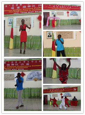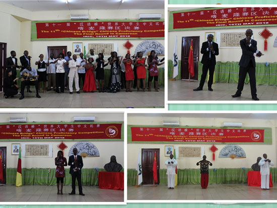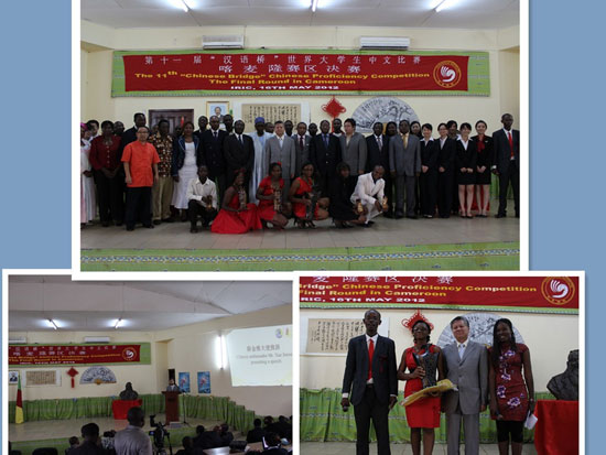 经过预赛的筛选,来自喀麦隆首都雅温得与北部城市马鲁阿的十位优秀选手获得了参加喀麦隆赛区决赛的资格。他们通过中文演讲、知识问答及才艺表演三个环节充分展现了自己的中文表达能力和对中国文化知识的掌握。中国驻喀麦隆使馆、中资机构、中国医疗队等有关单位负责人应邀担任了评委。第十届“汉语桥”比赛的获奖者周丽彤和董小平应邀担任了比赛的主持人。