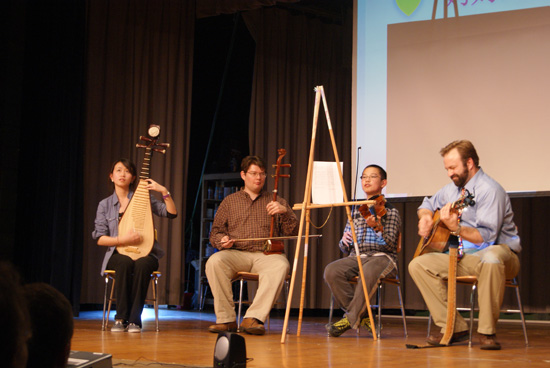 孩子们的表演结束后,由刘莎、Scotty、Robort等中、美两国朋友组成的孔子乐队给观众们表演了中国乐曲《美丽的神话》、《琵琶语》,中国传统乐器琵琶、二胡和西方乐器小提琴、吉他一起演奏,产生出新奇的听觉效果。宁静、优美的旋律让观众们感受到中国音乐的独特魅力。
