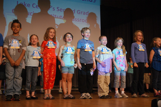 Lake Center小学的学生吟诵唐诗《咏鹅》