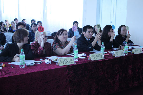 本次比赛形式新颖,图为评委们为选手现场打分
