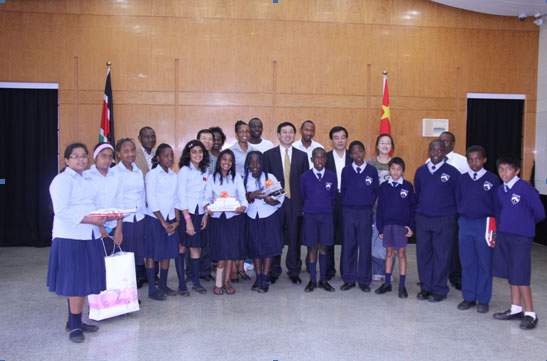 布拉伊本国际小学隶属肯尼亚当地一个知名的国际教育集团。集团旗下设有20多个分校,包括小学、初中、高中。布拉伊本国际小学已开设汉语课程,但目前还没有母语汉语教师。鉴于有相当一部分师生对汉语和中华文化怀有浓厚的兴趣,中国使馆接受该校此前递交的希望参观中国驻肯使馆的请求,并有机会现场体验中国的语言文化。