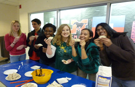 乔治梅森高中学生学包饺子