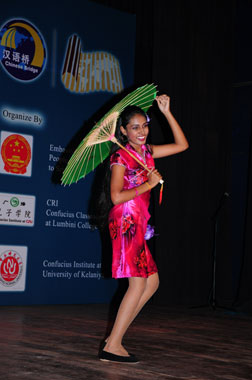 5月20日以“我的中国梦”为主题的第十一届“汉语桥”世界大学生中文比赛斯里兰卡赛区预赛在首都科伦坡著名的兰比尼剧场成功举办。此次比赛受中国驻斯里兰卡大使馆委托,国际台斯里兰卡兰比尼广播孔子课堂和凯拉尼亚大学孔子学院联合承办。中国驻斯大使馆文化处主任一秘沈鸣先生、孔子课堂、孔子学院理事会成员及师生家长、汉语学习爱好者等各界人士观摩了比赛。