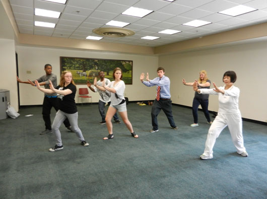 5月19日是周六,但肯塔基大学孔子学院(简称“肯大孔院”)的成员依然在忙碌地工作。根据肯大孔院的安排,4位该院的汉语教师在于肯大学生中心举办的肯塔基世界语言展示会上提供了3场中国语言文化演示活动。在同一天,在当地的蓝草社区技术学院举办的“和平与全球公民义务”活动期间,肯大孔院也在该事件的组成部分“文化庙会”上展示了该院的一系列材料。