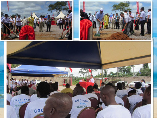将近6月的雅温得,雨水与阳光交相辉映,虽然路面还残留着雨水的痕迹,但在阳光的照射下已略微泥泞。在甘肃地矿局喀麦隆公司新基地庆典仪式上,中国驻喀麦隆大使馆政务参赞李昌林、雅温得第二大学孔子学院院长赵有华等在甘肃地矿局有关领导的陪同下,一起为新基地的奠基石培土。