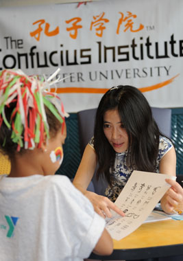活动进行了三个小时,我们发现有几名小朋友一直在孔子学院的文化摊位前,他们完全被有趣的中国文化吸引住了,流连忘返。 我们希望,费佛尔大学孔子学院能继续为夏洛特社区的多元文化增添一笔靓丽的色彩!