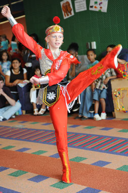 孔子课堂中文班学生凯蒂进行了精彩的中国舞蹈表演《木兰归》
