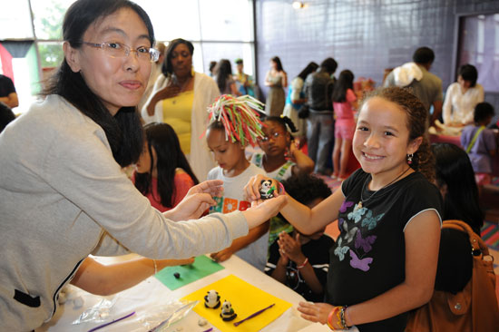 孔子学院教师刘晓惠教小朋友们捏熊猫泥塑