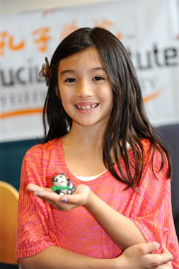 在活动中,孔子学院的文化摊位吸引了很多小朋友。教师刘晓惠的熊猫泥塑更是受孩子们的喜爱,不一会功夫,一个个栩栩如生的熊猫便在孩子们的手中产生了;为美国人取中文名字,并用中国书法进行书写,也很受青睐,每个人都拿着自己的中文名字孔子学院的老师们学习如何发音。我们还特意为小朋友们准备了《三十六个字》这一象形文字动画电影,并让他们用一些象形性极强的中国文字,如“日”“月”“山”“水”“草”“马”等创作一副象形文字画,使得美国小朋友在绘画中体验中国文字的乐趣。