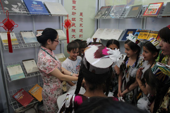 当天上午10时,在简短而不失热闹的开幕仪式之后,迫不及待的人群立即涌进了书展大厅,整个大厅人头攒动,气氛浓烈。尤其是代表中国的孔子学院展台,吸引了络绎不绝的观众,他们怀着对中国和中国文化的极大兴趣,在孔子学院展台上翻阅图书,交流交谈,而孔子学院的老师也热情地解答着他们的各种提问,并为他们讲解演示着各种中国文化。当中午12时许塔吉克斯坦文化部长阿斯洛里(ASRORI)来到中国展台时,现场气氛达到了最高潮。部长先生认真地参观了中国展台并亲切地与孔子学院老师交谈。更值得一提的是,塔吉克斯坦许多小学和中学的学生在老师的带领下也前来参观。他们在孔子学院展台前认真翻阅着各类书籍,兴致勃勃地询问中国老师们各种问题,有的还当即和中国老师们学起了汉语。此外,他们还纷纷要求与身着旗袍的中国老师们合影。直到下午展览闭馆,学生们一个个都还意犹未尽,流连忘返……
