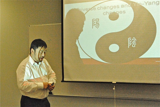 中医倡导与自然协调一致的生活方式,闫院长还为大家讲解了中医理论阴阳五行学说。“阴”“阳”对于美国人来说,是比较新鲜的术语。但是,闫院长结合自身多年对中医理论的研究以及体验,引经据典,对此进行了生动的讲解。