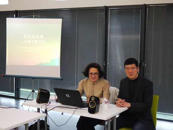 2012年5月,受国家汉办/孔子学院总部委托,丝绸之路文化艺术研究所所长艾娣雅﹒买买提教授来到普瓦提埃大学孔子学院和师生交流丝路文化。