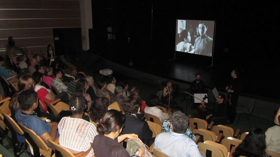 5月25日晚,西巴黎大学孔子学院为了学年毕业典礼,举办了一场电影音乐会— Baudime Jam先生领衔的法国Quatuor Prima Vista弦乐四重奏乐队为播映的中国30年代无声电影《神女》配乐演出。应邀嘉宾除了本校的师生以外,还有法国著名汉学家,比如来自法国高等实验学院、主持五经翻译的 Marc KALINOWSKI教授,还有来自法国国家科学研究中心的Françoise BOTTERO教授等。
