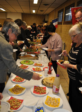 最后一项活动是品尝中国菜。满桌诱人的中国菜都由孔子学院志愿者们一手烹饪而成。三杯鸡、卤牛肉、回锅肉、茄汁鱼块、清炒荷兰豆、蒜蓉西兰花、五香花生米、凉拌木耳、什锦炒面、烙饼花卷……各式菜肴色香味十足。大家开心地品尝着每一道菜,饶有兴趣地询问菜谱,露出满意的笑容,赞不绝口,一会儿工夫,饭菜一扫而光……