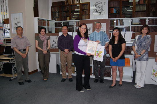 6月11日晚上,贝尔格莱德孔子学院在市图书馆阅览室举行书画班、太极拳班结业典礼和师生书画作品展开幕式。这是孔子学院第二次举办中国书法班和太极拳班,第一次举办国画班,书法班和太极拳班学期两个月,国画班为期一个月。