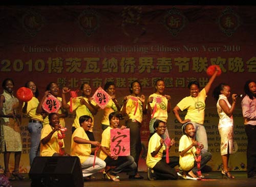 2月13日,博茨瓦纳大学孔子学院合唱团受邀出席博茨瓦纳华人华侨春节联欢晚会,为来自博茨瓦纳各届的一千多名华人观众及当地社会各界人士献上了精彩演出。