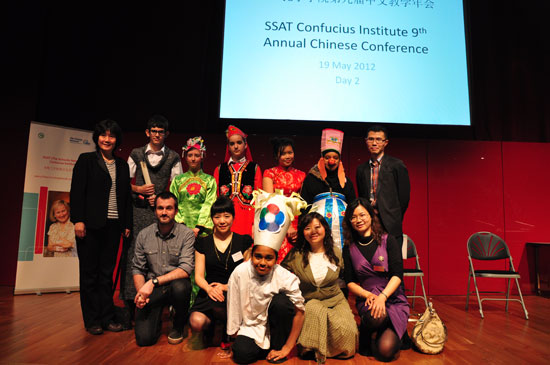 2012年5月19日,大英博物馆礼堂里掌声雷动,欢声笑语连绵不绝,原来是金斯福德社区学校的中文话剧《猪八戒相亲》正在上演。应SSAT(英格兰学校联合会)邀请,金斯福德社区学校的六名学生在SSAT年会期间,将曾获British Council, HSBC中文大赛二等奖的话剧,向近百名参会教师做了汇报演出。
