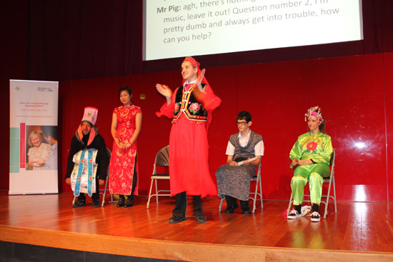 在表演过程中,学生清晰标准的发音,地道流利的表达,对台词精准的理解和把握,自制的精美道具以及他们自信大方,充满喜感的表演,博得了全场观众的热烈掌声和欢笑声,赢得了高度的评价和充分的认可。