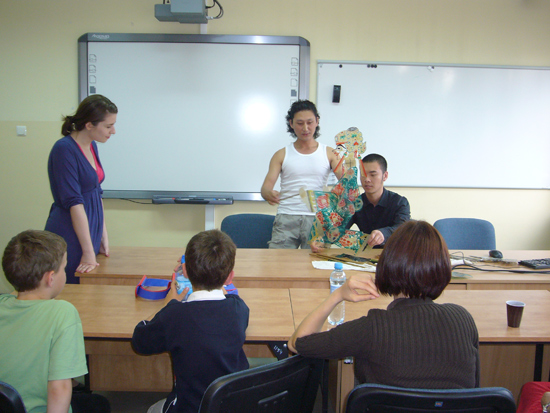 京剧和皮影戏剧社的著名演员亲自进行生动全面的讲解,并邀请参加讲座的听众亲身体验和感受京剧与皮影艺术的魅力,这种讲座形式受到参加讲座的听众的欢迎,讲座现场非常热烈,获得很好的反响和效果。