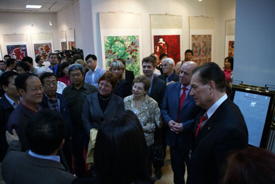 滨海边疆区省长夫人米克路舍夫斯卡娅女士、符拉迪沃斯托克市杜马主席罗佐夫先生、驻哈巴罗夫斯克总领馆符拉迪沃斯托克办公室徐小川先生、滨海边疆区妇联主席伊奥夫科娃女士、远东联邦大学教学副校长古里洛夫先生、滨海边疆区国立美术馆馆长阿日莫娃女士、滨海边疆区华商联合会主席孙雷先生及中外嘉宾约50余人参加了开幕式。在开幕式的招待酒会上,中外嘉宾与来自中国的民间画家代表团亲切交流,开幕式在友好及融洽的气氛中结束。来自符拉迪沃斯托克市ОТВ、ТНТ以及РОССИЯ电视台等媒体对此次活动进行了报道。