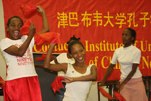 津巴布韦大学孔子学院成立于2007年,目前,除了建立起较为完备的汉语选修课制度,举办多个汉语短期培训班,津大孔子学院还在四所当地学校中建立了孔子课堂。(津巴布韦大学孔子学院供稿)