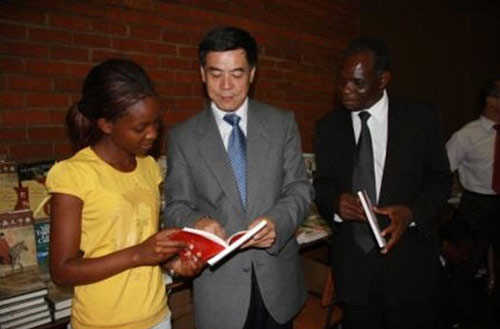 津巴布韦大使忻顺康参加联欢会期间的书展