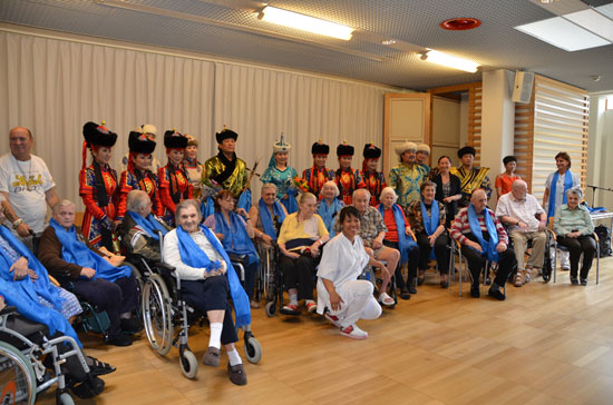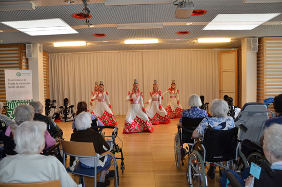第二天的演出则非常特别。因为演出地点在维也纳养老院,在场观众都是住在这儿的老爷爷奶奶们。年龄最大的已有100多岁。他们个个都坐着轮椅前来观看演出,甚至有人躺在轮床上。