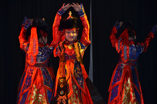 随着一曲《美丽富饶的阿拉善》,演员们为在场观众逐步展开了一幅辽阔豪放的草原艺术画卷。“呼麦”、“长调”,还有倍受人们喜爱的马头琴、顶碗舞、萨吾尔登舞蹈等。这些内蒙古人民独有的原生态艺术都已被列入世界非物质文化遗产。