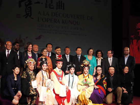 此次活动包括昆曲展览、后台化妆现场互动、昆曲表演和昆曲电影《红楼梦》的首发式。联合国教科文组织驻北京代表处主任辛格先生、联合国教科文组织非议处中国联络人木卡拉、中国驻法国大使馆文化处公使衔参赞吕军、中国北京对外文化交流协会副会长王海平、中国北京市文化局副局长吕先富、中国北京市国有资产经营有限责任公司董事长李爱庆、中国北方昆曲剧院院长杨凤一、中国北方昆曲剧院书记凌金玉、中国北京北奥集团影视公司副总经理宋红、昆曲艺术片《红楼梦》导演龚应恬先生等嘉宾和近四百名社会名流和孔子学院师生欢聚一堂,一起感受这次视觉和听觉的盛宴。