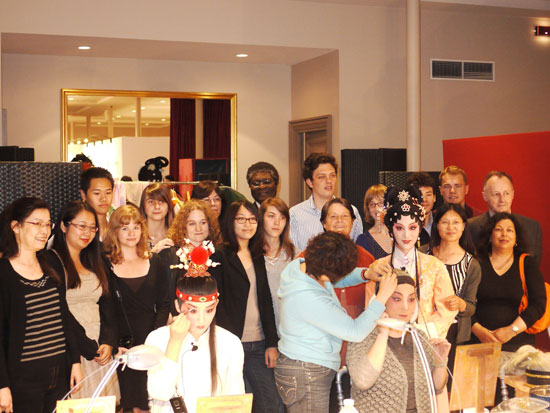 普瓦提埃大学孔子学院的师生,巴黎十大的校领导和孔子学院的师生们兴致勃勃地参与活动,巴黎十大孔院中外方院长带孔院师生参观了昆曲化妆现场。