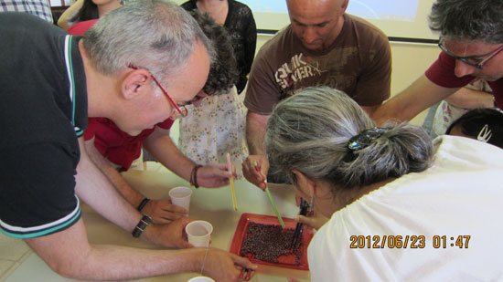 整个晚会气氛十分热烈,参加晚会的西班牙学员和友人们在优美的中国传统音乐的伴奏下,积极参与活动。儿童学员们用水彩笔在煮熟的鸡蛋上勾画了形态各异的图案,展示了他们对古老中国的丰富想象力。成人学员们则争先恐后体验筷子夹红豆,制作五彩线绳等游戏项目,每当夹起一颗小小的红豆,他们的脸上就会留露出深深的满足感和成就感,每当做好一根五彩线绳,他们都会爱不释手地佩戴到手腕上。游戏之后,大家一起品尝了粽子和茶叶蛋,美味的传统食物令西班牙人竖起了大拇指,赞不绝口。