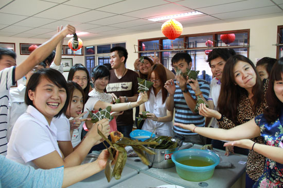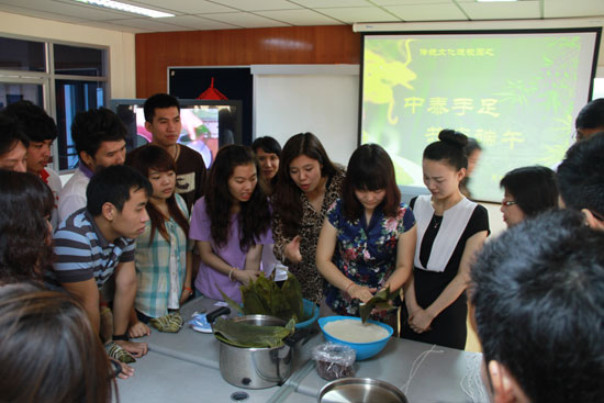 联欢会以中国传统游戏击鼓传花开场,以端午节知识竞答为游戏形式,让大家在紧张的节奏和欢声笑语中普及了历史知识,学习了古典诗词,也尝到了传统的中国美食,体验了亲自制作中国美食的乐趣。同学们争先恐后参与活动,对自己亲手包制的粽子更是爱不释手,对传统文化的热情已然通过小小的粽子融入他们心中。