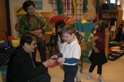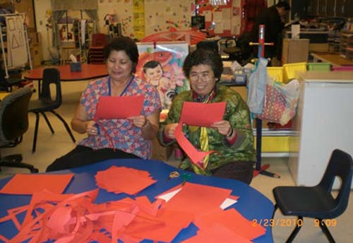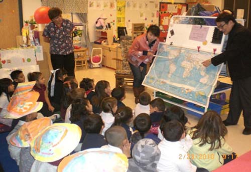 Vado小学位于Las Cruces20英里外的Gasden学区,学生有60多人,尽管学校目前没有开设汉语课,但中国文化的宣传却早已开始。学校的4位老师都是“中国迷”,走廊的墙上有一个宣传中国文化的文化墙, 上面贴满了“朋友”、“幸福”、“和平”、“信心”等汉语词汇。 2010年2月23日,孔子学院部分教师应邀来到了这所小学。活动当天,来自孔院的一位中国老师向学生们展示了世界地图,告诉孩子们中国在哪里,又用汉语拼音教:中国!然后拿出美国国旗和中国国旗作比较,问美国国旗有几种颜色、几颗星,又问中国国旗有几种颜色、几颗星,孩子们的回答都非常好。随后,汉语教师又教了孩子们如何发四声:“ā-á-ǎ-à”和说“你好”、“过年好”、 “再见” 、“ 谢谢”。没想到短短的20分钟内,这些3-5岁的孩子们就全都记住了这些词。在教孩子们学这些汉语词汇的同时,另外一些老师们在中国老师的指导下学做红包,并将每个写有孩子姓名的红包用中国传统的拜年的形式发给他们。领红包的时候,每个孩子说“过年好!”,领到红包后说,“谢谢!再见!”。绝大多数孩子发音准确,连一旁的美国老师也努力模仿和学习。