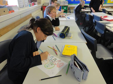学生们正认真地设计自己的海报