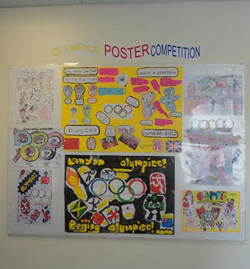 海报展示栏吸引了不少其他年级学生和老师的目光,他们表示这些作品太棒了!并且也帮助他们了解到了不少北京奥运的知识,很有意思!