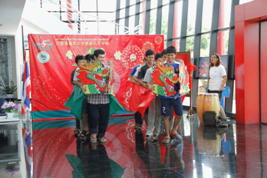 素攀孔子学院泰方院长车琴(Churdchin Sookplang)、中方院长张秀娥、川登喜皇家大学素攀分校领导以及泰国公务员委员会的部分官员隆重出席了全天的庆祝活动,300余名川登喜皇家大学师生饶有兴致地参加了各项中国文化体验活动。