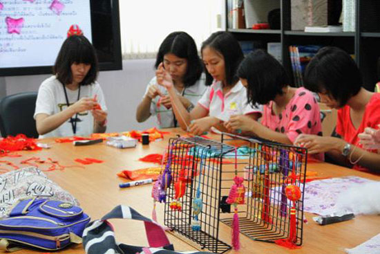 活动设置了六大板块,传统的粽香情浓板块不仅可以观看粽子制作的全过程,还可以亲手尝试包粽子的无穷快乐;中国书法板块采用示范与实践相结合的方式,握笔姿势、运笔方法、字体布局等书法要领,学生们在示范中得以理解,实践中加以体会;中国功夫板块则以太极拳练习为主,太极拳的手法、步法、气息协调融合,丝丝玄妙的感觉,展现出中国文化的奥妙圆通;中国剪纸板块则体现了中国人民心灵手巧的一面,精致巧妙的剪纸作品吸引了不少本来就很喜欢手工制作的泰国学生,大有比试一番的气势;
