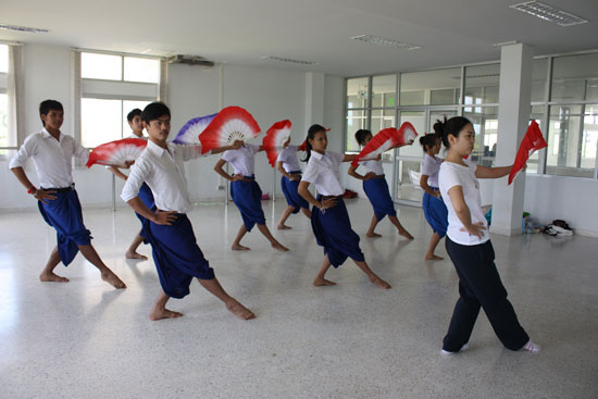 志愿者教师正在教授扇子舞