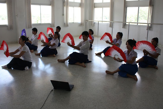 首次接触中国民族舞的泰国学生对中国舞蹈老师的到来表现的兴奋不已。他们都认为不论是背景音乐、舞蹈动作还是舞蹈者的表情,中国民族舞每一个细节都很美。南国有佳人,轻盈绿腰舞。在学习扇子舞的过程中,泰国学生进步神速,这赢得了志愿者和在场的舞蹈老师们的啧啧称赞。志愿者教师的舞蹈示范也让学生们受益良多。观看完首次舞蹈课程后,宋卡王子大学表演系主任表示说:“非常感谢中国志愿者的到来,你们不仅带来了汉语知识,而且还带来了中国舞蹈,中国舞蹈具有独特的东方魅力,希望普吉孔子学院将来能举办更多喜闻乐见的活动,让泰国人民更加了解中国。”