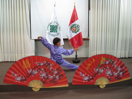 太极拳作为中国文化的一部分,蕴含着深刻的哲学思想;练习太极拳,既养生,亦修性。向秘鲁学生们介绍并展示太极拳,目的在于使他们能从太极拳的运动中更加深刻地领悟到中国文化的深刻内涵。