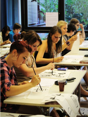 除了传统报告讲座,“中国日”走进中学校园系列活动在项目设置时,非常注意针对12-17岁青少年的性格特点,加强了活动的参与性与趣味性。书法课上,每人都有机会接触到真正的“笔墨纸砚”,自己磨墨亲手于宣纸上书写;功夫课上,跟师傅学一招半式之外还能比划较量;中餐课上,可以亲口品尝到大厨新鲜出锅的好手艺;京剧课上,除了看和听,还有机会学画京剧脸谱;此外还有风水课、麻将课和中文入门课等等。